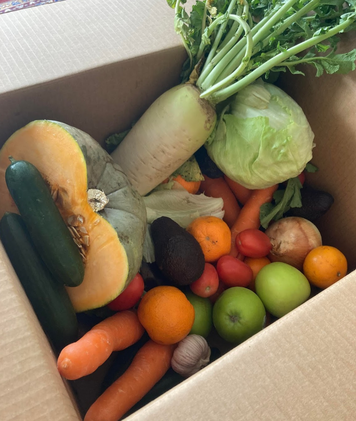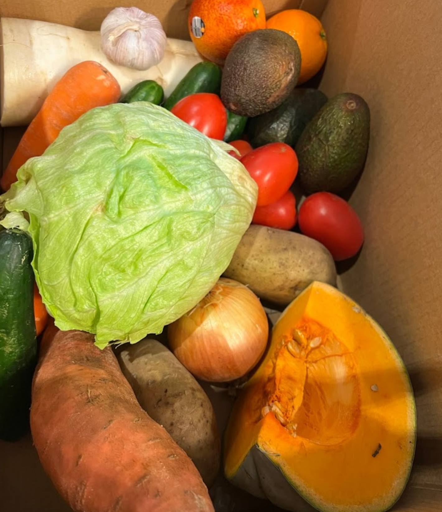 All of our boxes contain a minimum number of fruit and veg. On the weekend before your order, we will send you a list of what's in the upcoming box. If you don't want anything, let us know, and we'll replace it with another item of your choosing from the list. Around 40 percent of the produce in our boxes is made up of staple produce! We try to keep these staple items in everyone’s boxes almost every week. The rest of the box is filled with seasonal produce which gets changed around week to week depending on whats available!